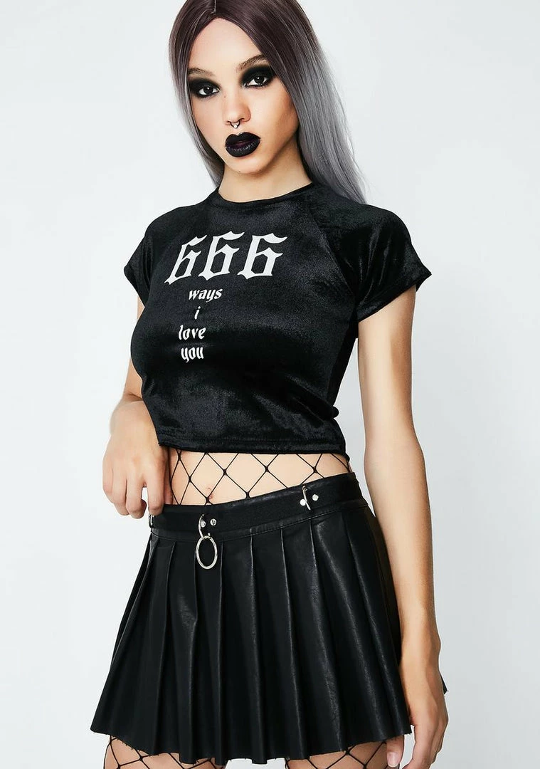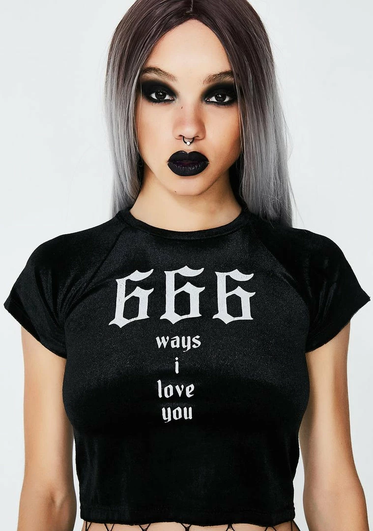 cuz itΓ’ΒΒs your lucky number bb! This velvet crop tee says 666 ways to love u on the front and comfy af all ova.
