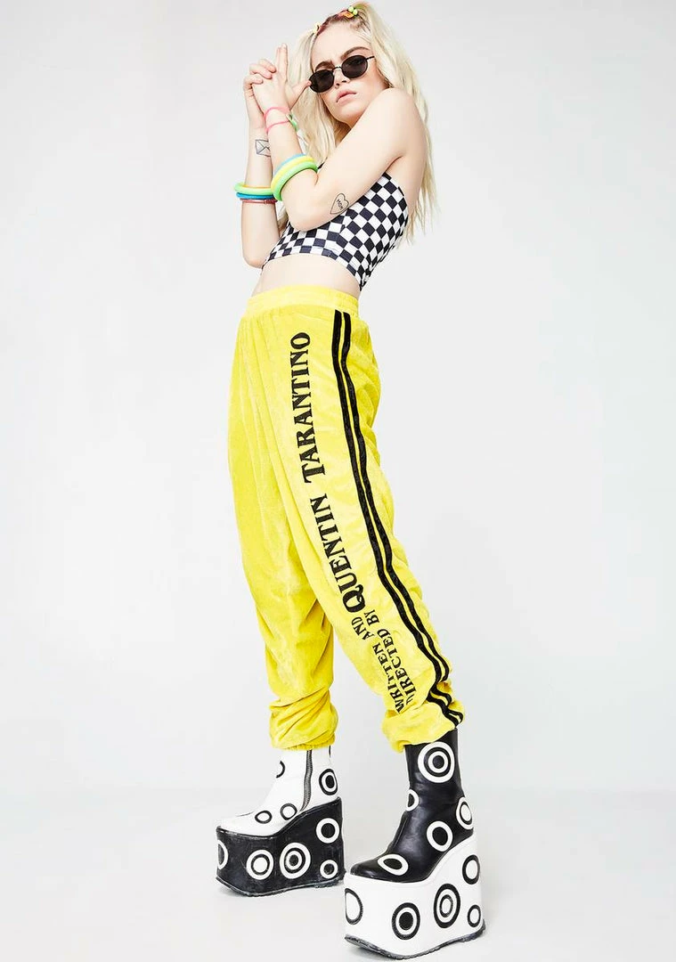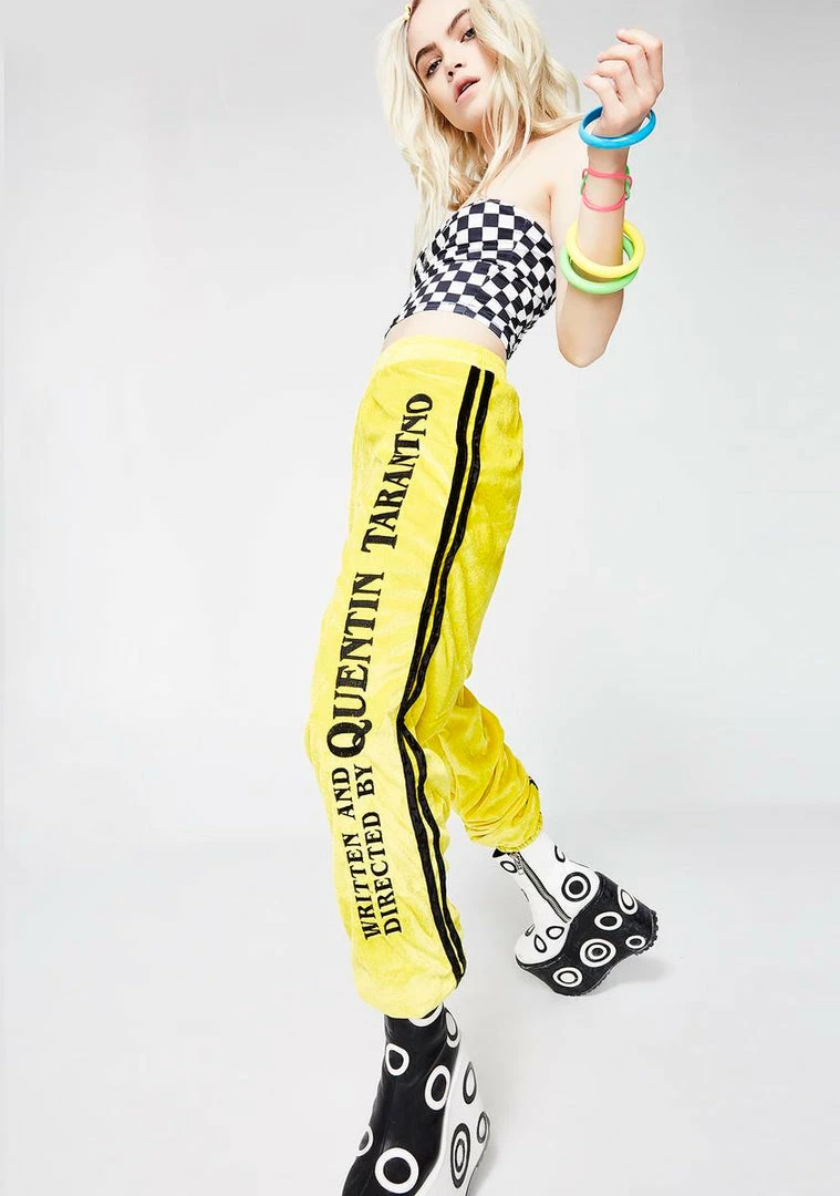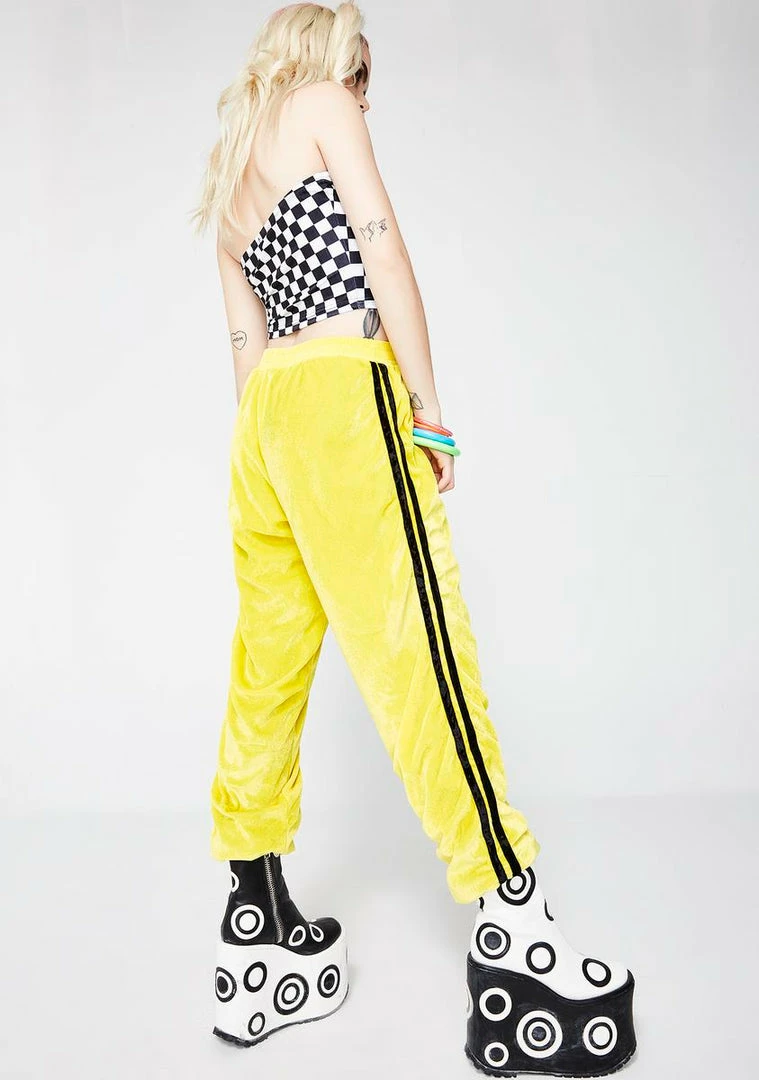 cuz youΓ’ΒΒre an epic piece of work babe. These dope velvet track pants have a stripe detail on the sides, an embroidered detail on the front and an elastic waistband.