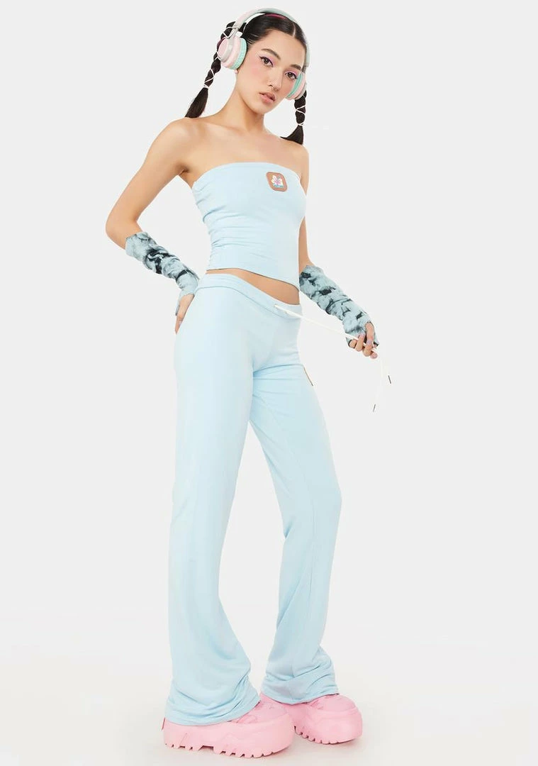 you’re living on island time. These lounge pants have a mid-rise waist with a drawstring tie, a PVC logo patch on the thigh, a double layered design, and a wide leg fit.