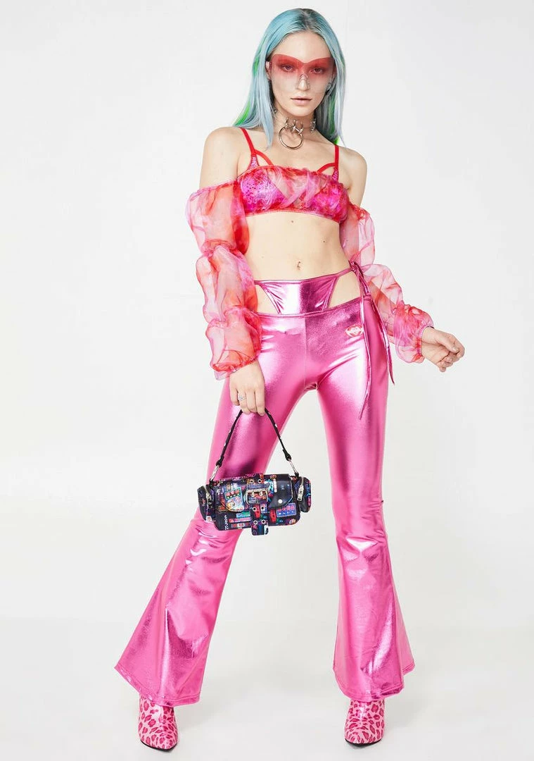 cuz you serve it up with sass bb! YouΓ’ΒΒre a style queen in these hawt g-string flared pants that have a high waist fit, adjustable side ties, and a logo badge on the leg.