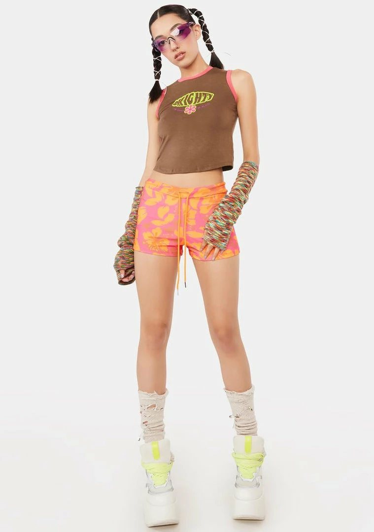 every day is new! This tank top has an iconic O Mighty graphic logo print across the front, leopard print trim, and a cropped hem.