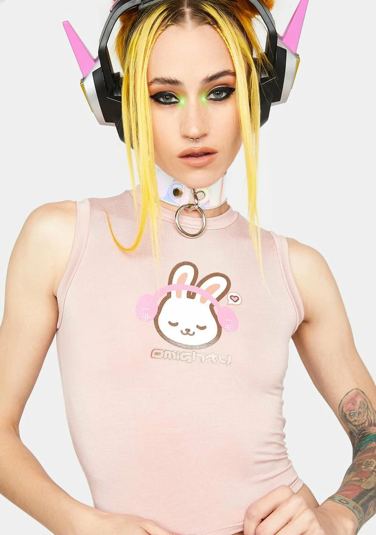 how can one person be so cute? This tank top has an all over stretch, a cropped fit, and a bunny graphic printed across the chest.