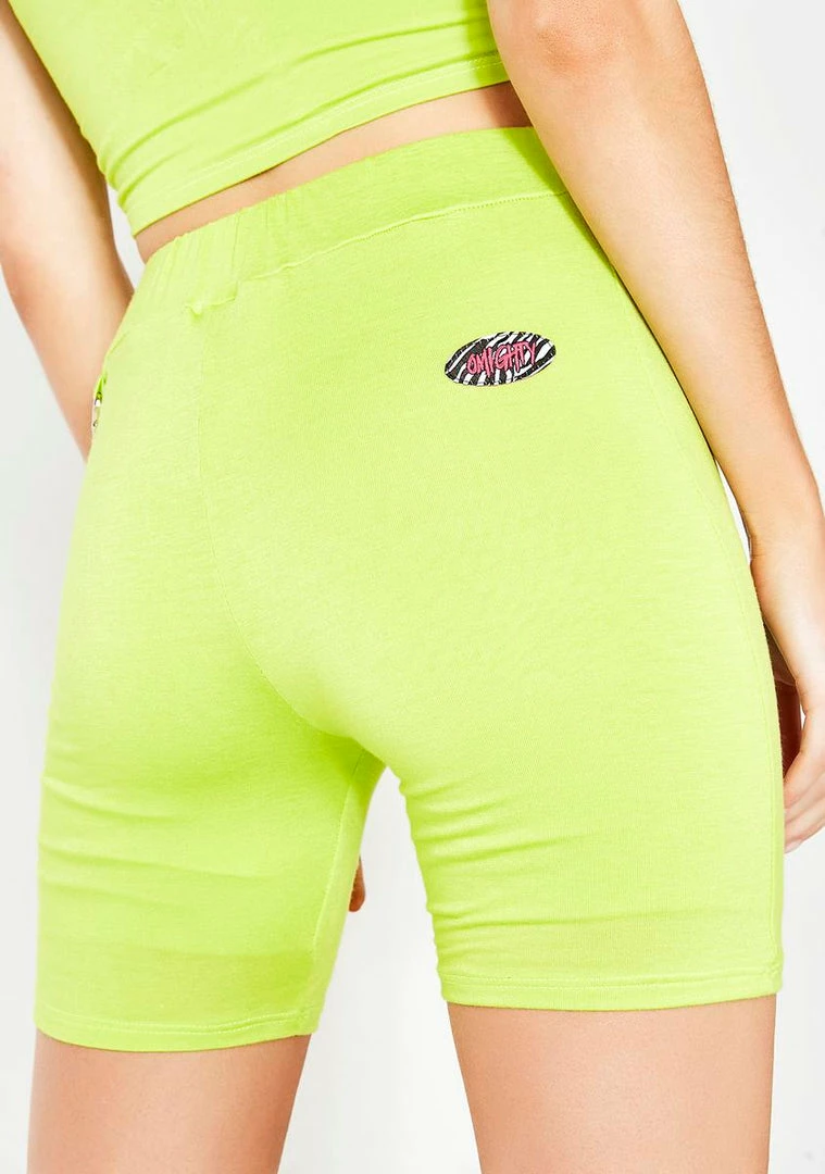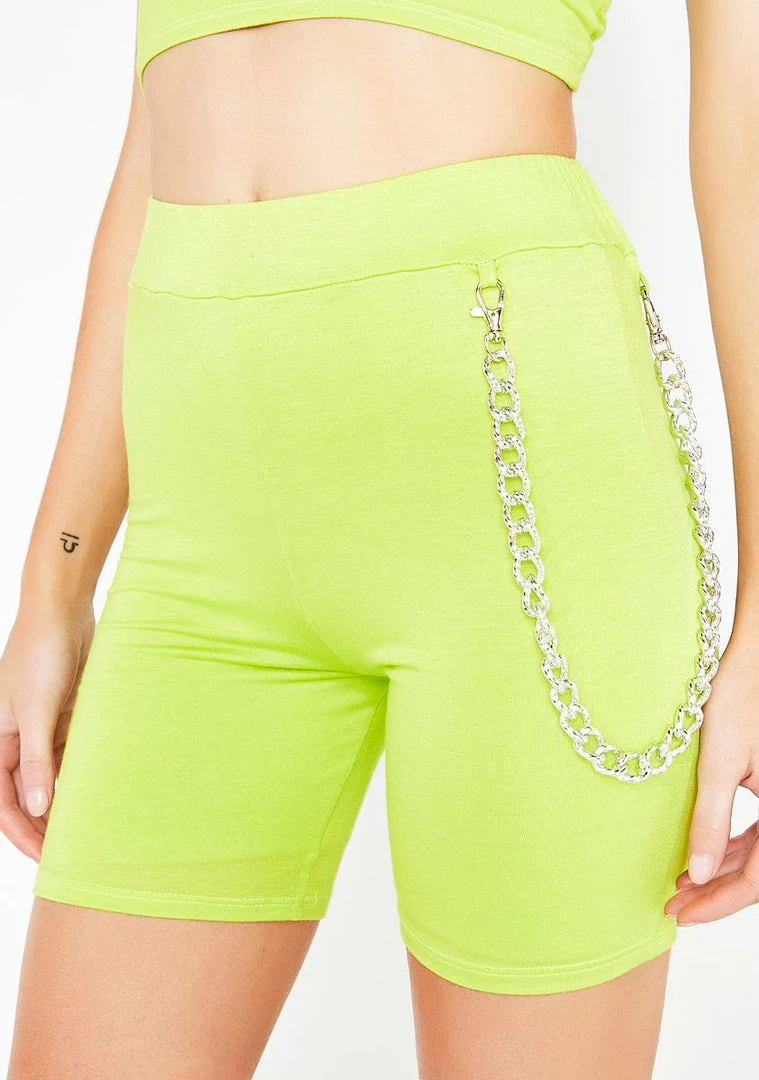 gotcha servinΓ’ΒΒ badazz vibes. Stay flossinΓ’ΒΒ hunty in these savage high waist neon biker shorts that have double trouble layers for support, a supa stretchy material, NΓ’ΒΒ a dope AF detachable chain.
