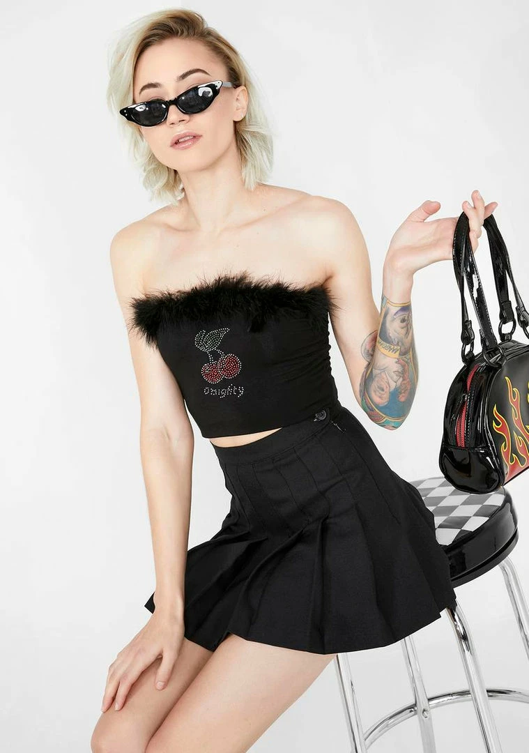 cuz ya cherry naughty. YouΓ’ΒΒre sweet AF in this flirty lil tube top that has a marabou trim, darlinΓ’ΒΒ rhinestone graphics on the front NΓ’ΒΒ a supa stretchy material.