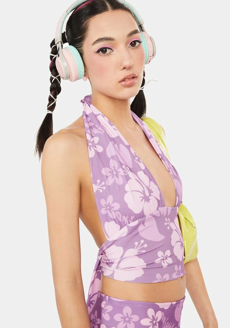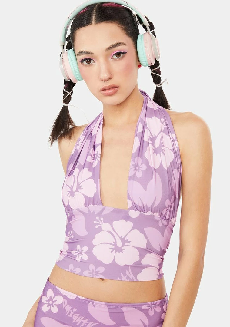 Budget ๐ O Mighty Crop Halter Top Purple Hibiscus Halter Top ๐งจ