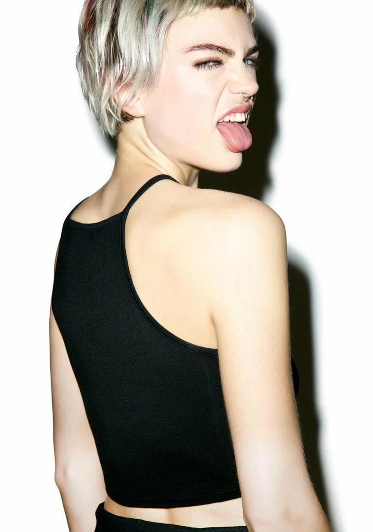 cuz mixed drinks and mixed feelings go so well together. This extra stretchy little tank top is perfect with its super snug fit, crop hemline and boozy print accenting yer bod.