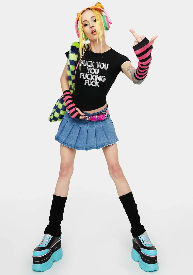 tell me how you really feel. This crop top has cap sleeves, an all over stretch, and sequin studded text across the front.