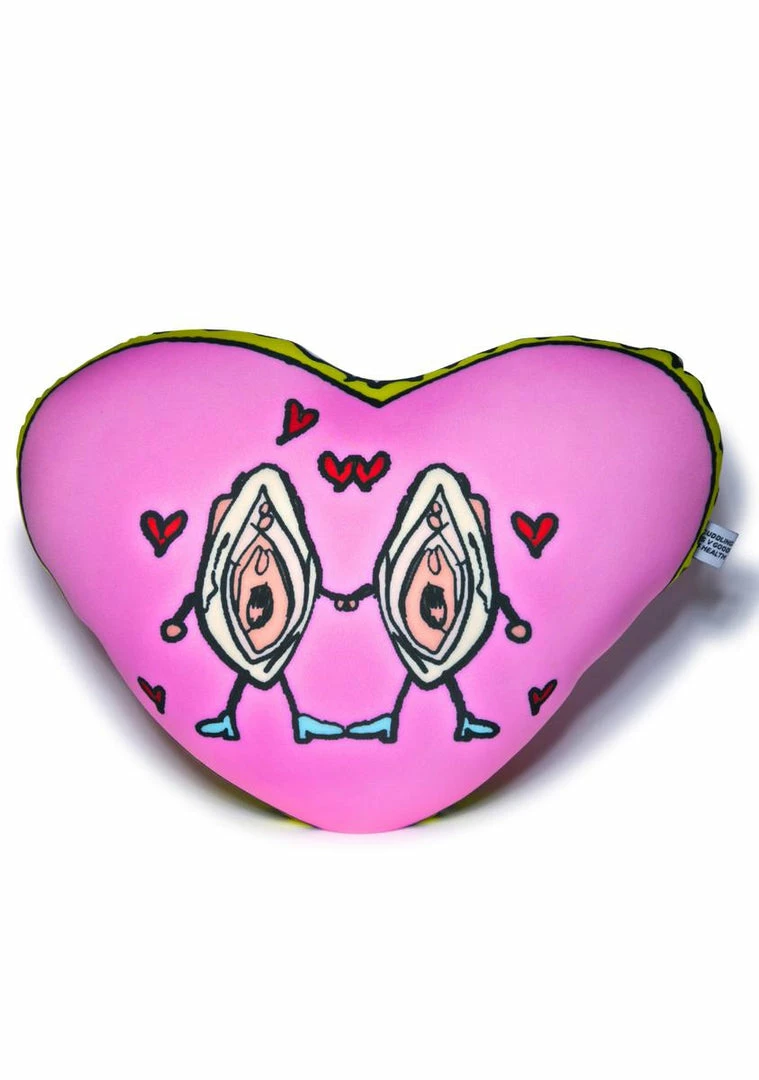 …Jam out with yer clams out! Featuring a pussy power couple and filled with supportive foam beads, these muffs may look tough, but this heart-shaped throw pillow feels silky soft.