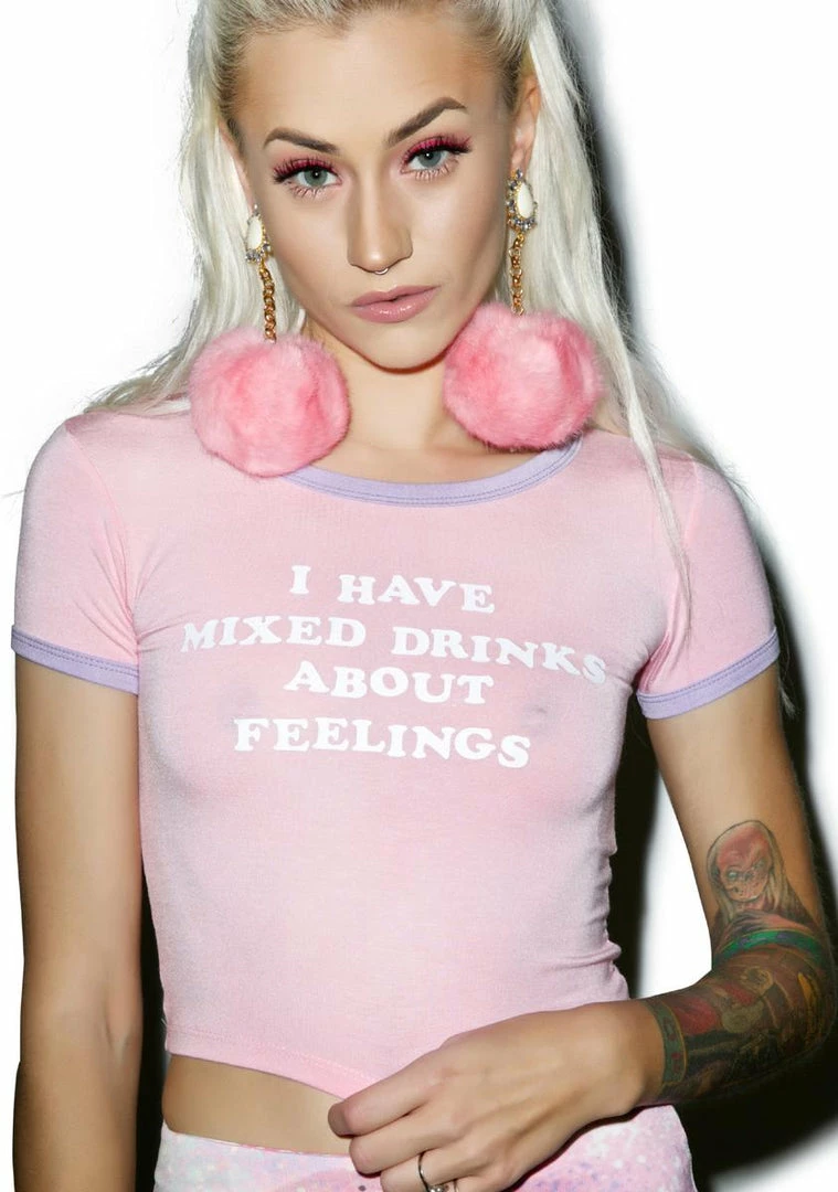 drink till ya forget all about yer feels bb. This adorable âlil cropped tee features cute af contrast trim and a sexy snug fit that will have everyone thirsty for ya.