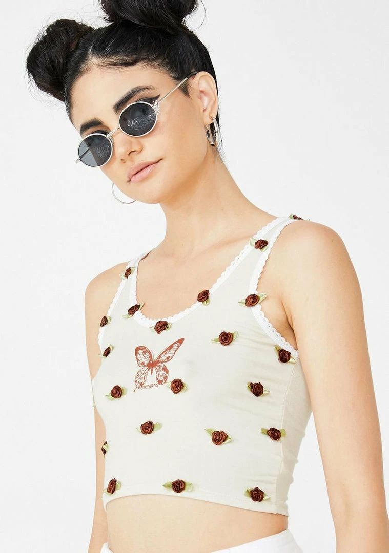 gotcha lewkinΓ’ΒΒ like a pure romantic, bae. Look cute AF in this flirty lil tank crop top that has a scoop neckline, budding flowers all ova NΓ’ΒΒ supa slim fit.