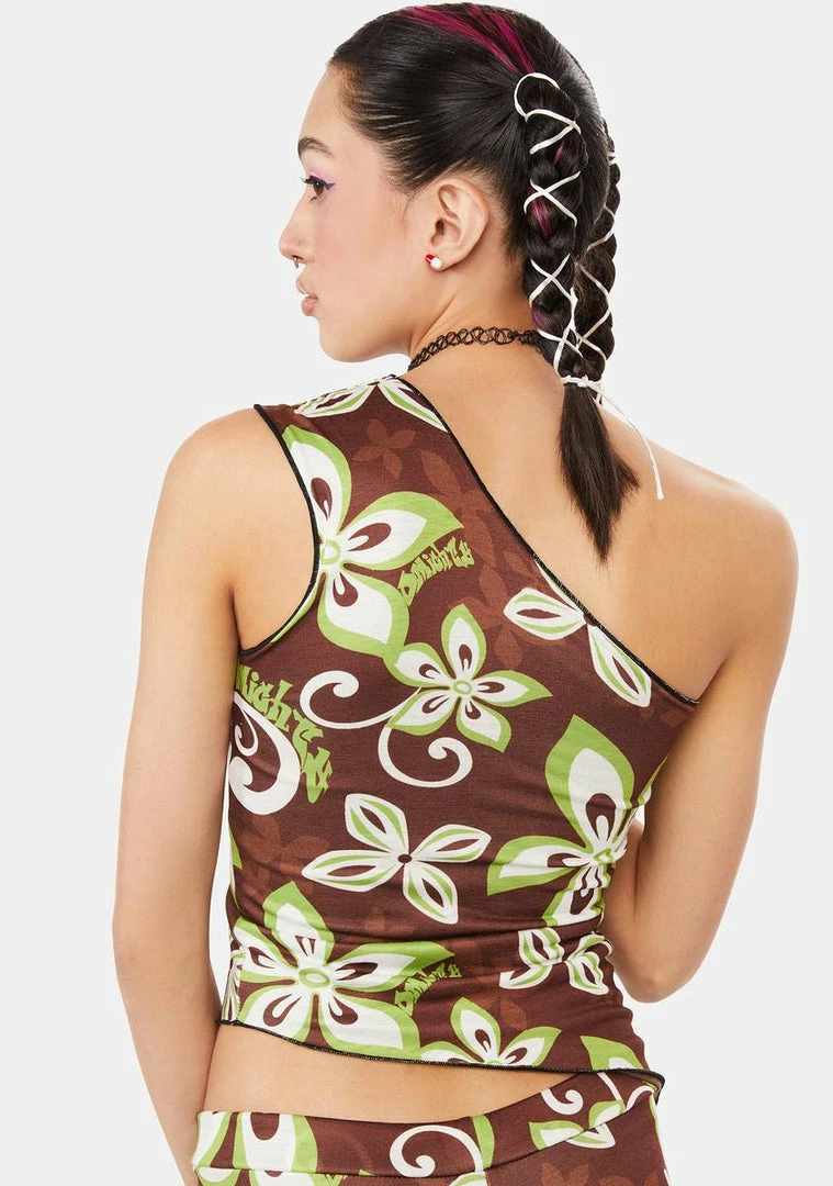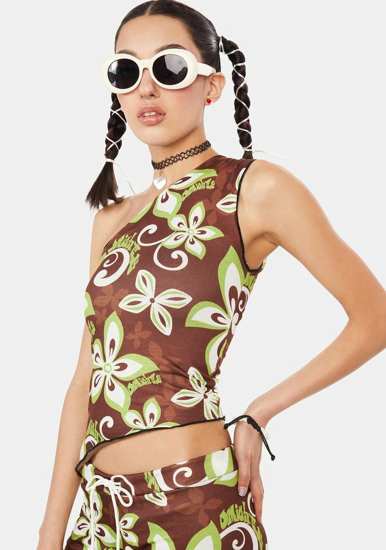 cuz you stepped right out of a time machine. You’re a Y2K babe in this crop top that has a Hawaiian floral print, a one shoulder neckline, and an asymmetric hem.
