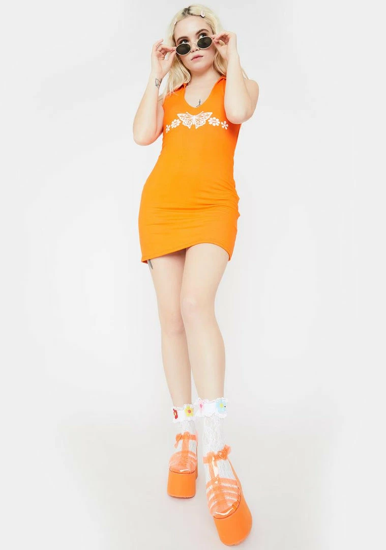 Best Pirce π₯° O Mighty Orange Butterfly Mini π Dress π€©