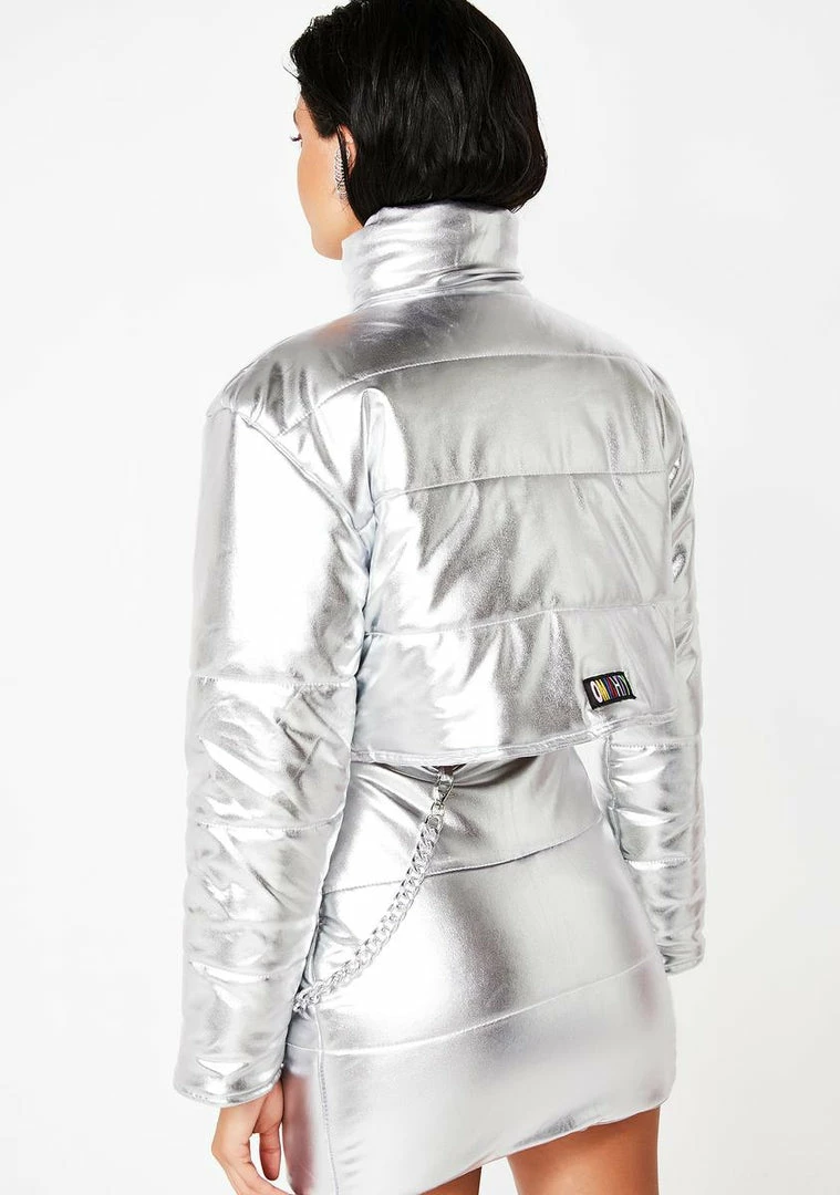 cuz ya one punked out chrome bardie bish. Join the SLAY QUEEN clique in this poppinΓ’ΒΒ cropped jacket that has a slight stretch all ova, a mini logo on the back, and shimmerinΓ’ΒΒ metallic detail.