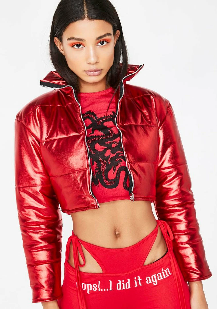 cuz ya too spicy for the pepper. Join the SLAY QUEEN clique in this poppinΓ’ΒΒ cropped jacket that has a slight stretch all ova, mini logo on the back, and shimmerinΓ’ΒΒ metallic detail.