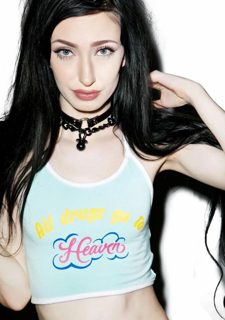 O Mighty All Drugs Go To Heaven Halter Top, cuz bad gurls go everywhere right bae? This fukkin dope halter is gonna have ya so high yer sure to feel heavenly. Featurin a super adorbz graphic reading, ÂAll Drugs Go To Heaven cuz we are all lookin to feel like an angel. With a seXXXy snug stretchy fit, cropped hemline, cool contrast trim and adjustable halter straps on this comfy BB is gonna be yer new drug of choice. Get yer head high in the clouds and flaunt that bod in this top!