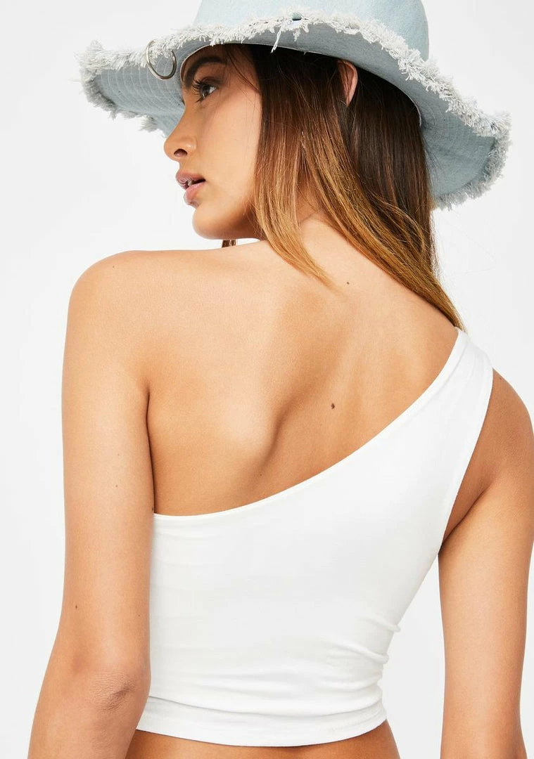 fer when ur feelinΓ’ΒΒ a little cute and sexy, bb! Show off a lil skin in this super comfy tank top that has a cropped fit, an asymmetrical one-shoulder design, and a glitter graphic on the front.