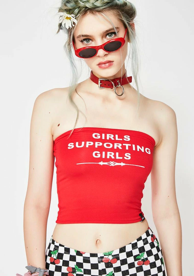 cuz girls run the world! This tube top has a slim fit, cropped length, and white รขยยGIRLS SUPPORTING GIRLSรขยย text on the front.