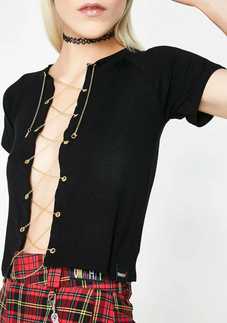 cuz youΓ’ΒΒre a lil naughty babe! This cute AF lil crop top has a sexxxy chain-link lace-up detail on the front and short sleeves.