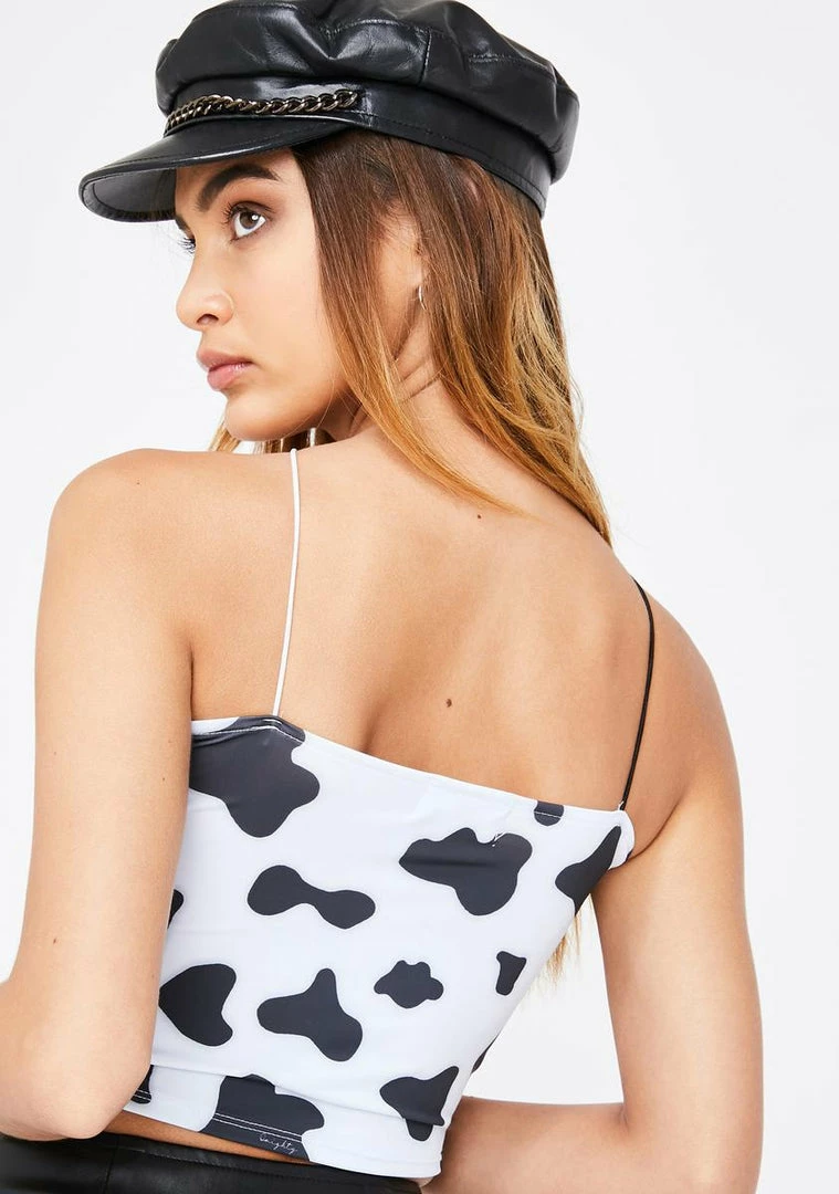 got ya bringinΓ’ΒΒ all the boyz to the yard, boo! LifeΓ’ΒΒs an animal farm in this cute AF cami tank that has a rad cow print, lil satin rose and supa stretchy cropped fit.