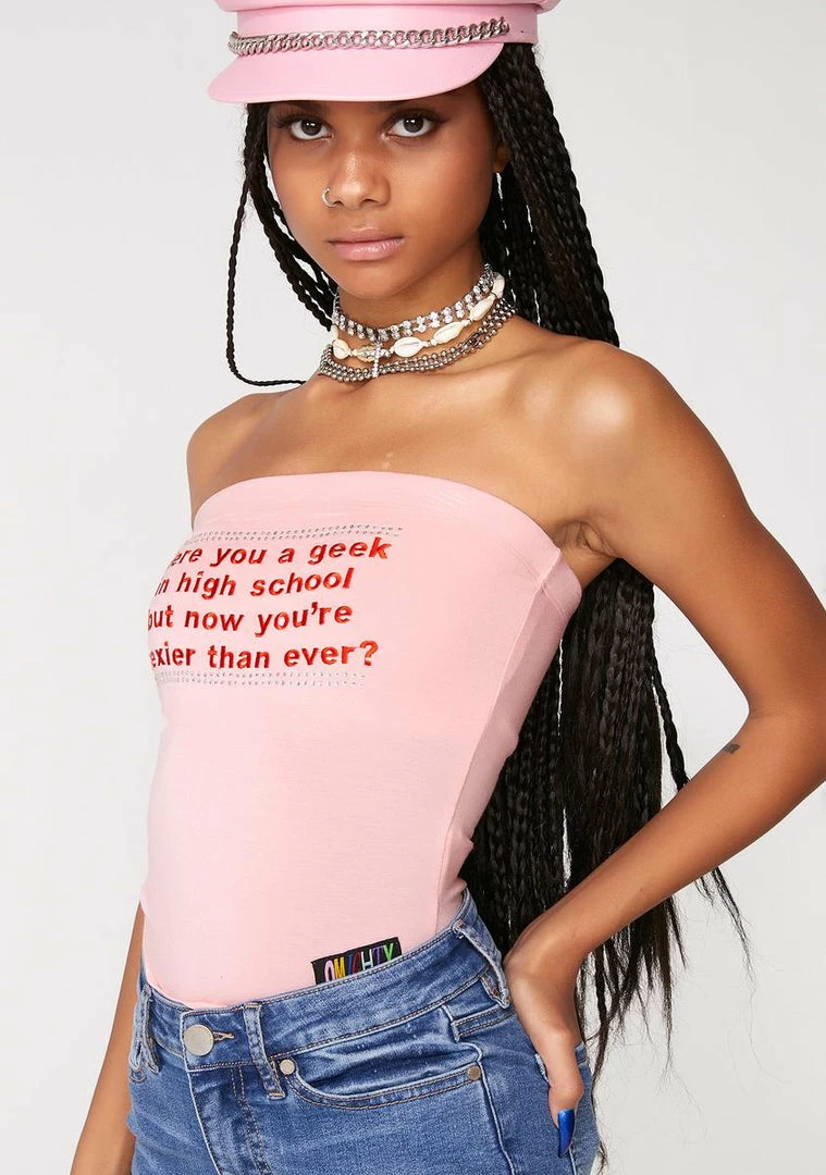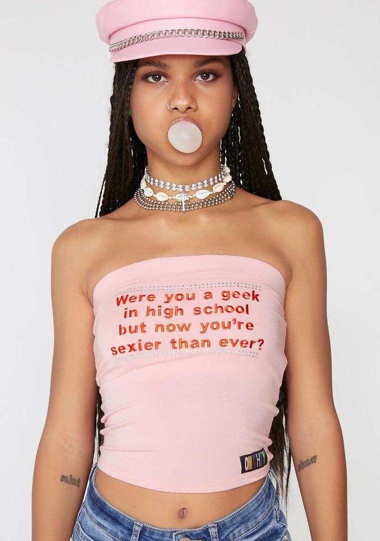 will have Γ’ΒΒem sliding into your DMΓ’ΒΒz babe! YouΓ’ΒΒre the queen of the #10YearChallenge in this geekinΓ’ΒΒ tube top that has a supa soft material, an elasticized top band, embroidered text graphics NΓ’ΒΒ rhinestone studding.