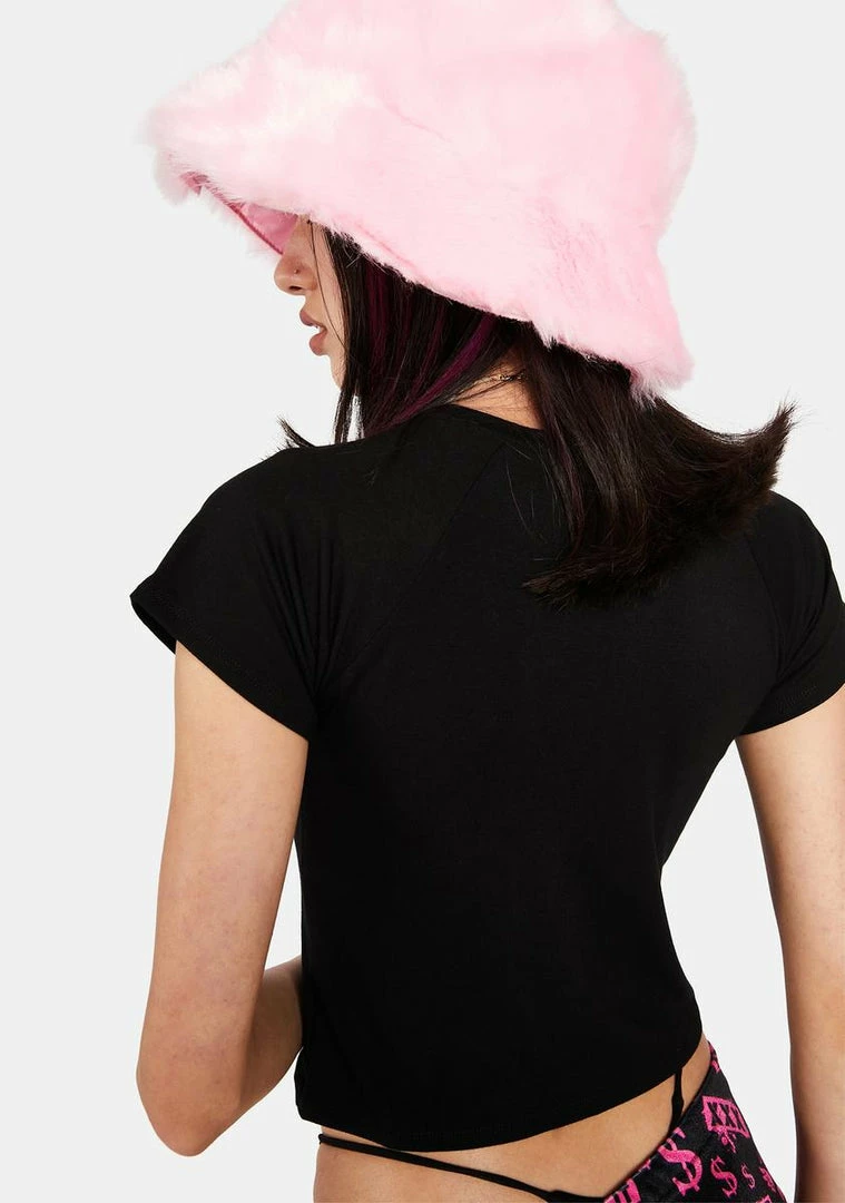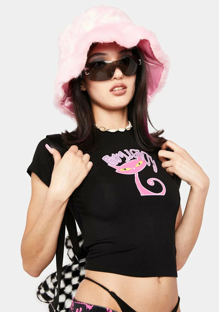 got you some admirers! This baby tee has cap sleeves, a sweet kitty graphic printed across the chest, and a cropped fit.