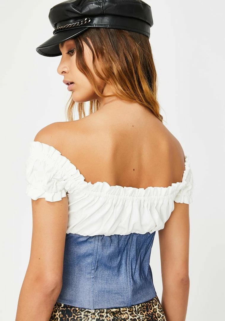 put the cute in cutie! YouΓ’ΒΒre a lil sassy in this off the shoulder top that has a supa romantic flirty bardot crop top that has a logo embroidery on the front, zip closure NΓ’ΒΒ boning construction for a snatched waistline.