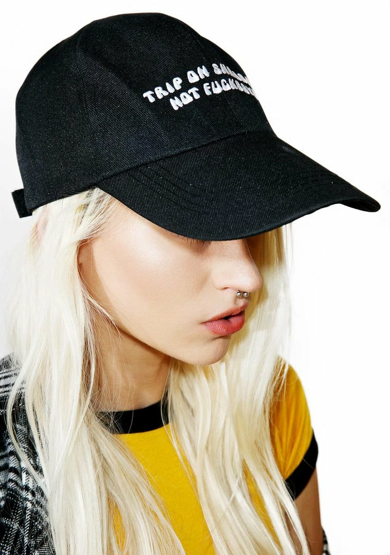 cuz itΓ’ΒΒs a helluva lot more enlightening, bb~ This sikk cap features a slouchy black construction, curved brim, adjustable velcro back strap, and embroidered lettering reading Γ’ΒΒTrip On Shrooms Not Fuckboys.Γ’ΒΒ